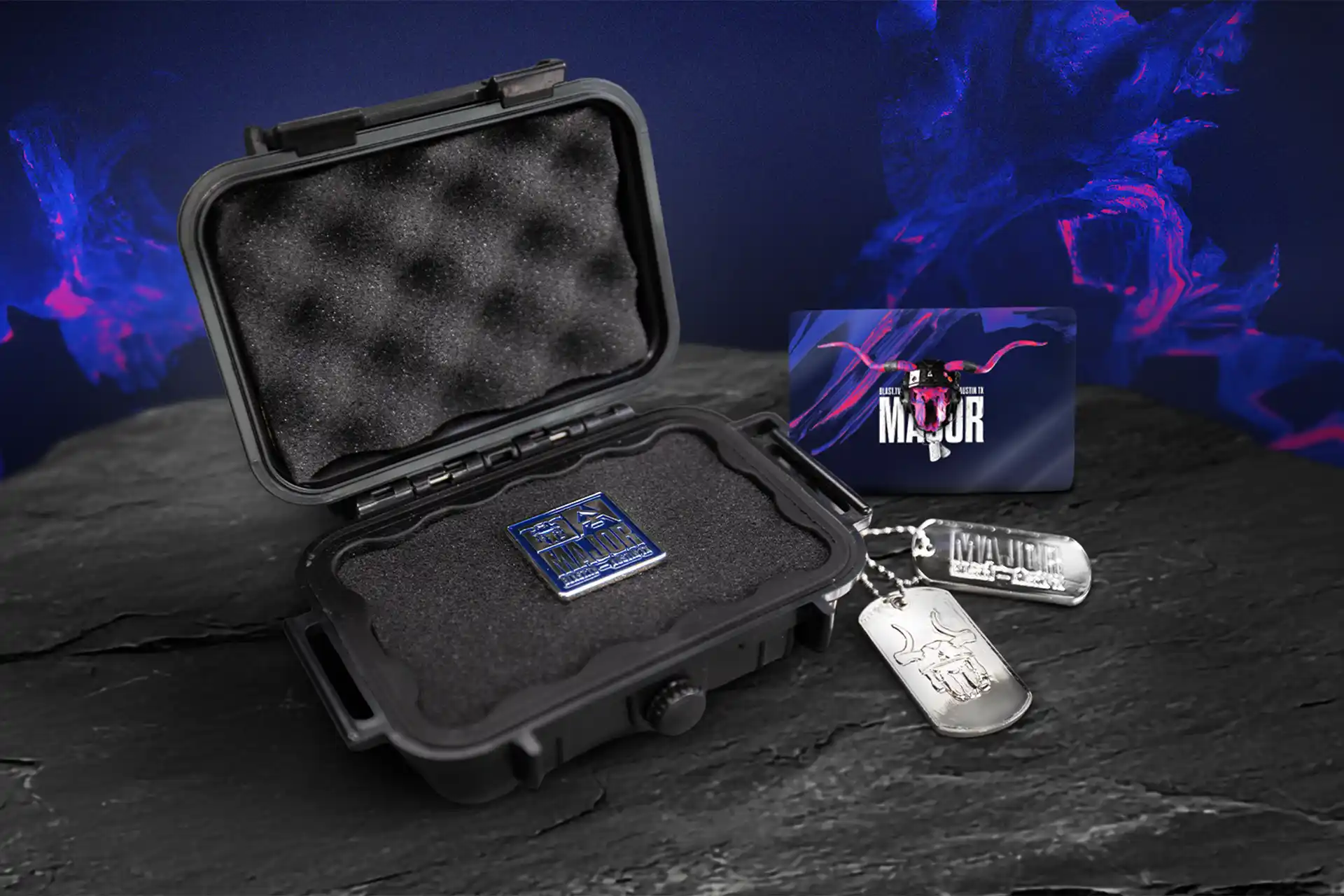 Encased in a custom-branded hard case with a tactical, military-inspired edge, each element was crafted to feel rare, weighty, and earned. Inside, players discovered a heavyweight metal pin stamped with the official Austin Major mark, a military-style dog tag, and a numbered authentication card.