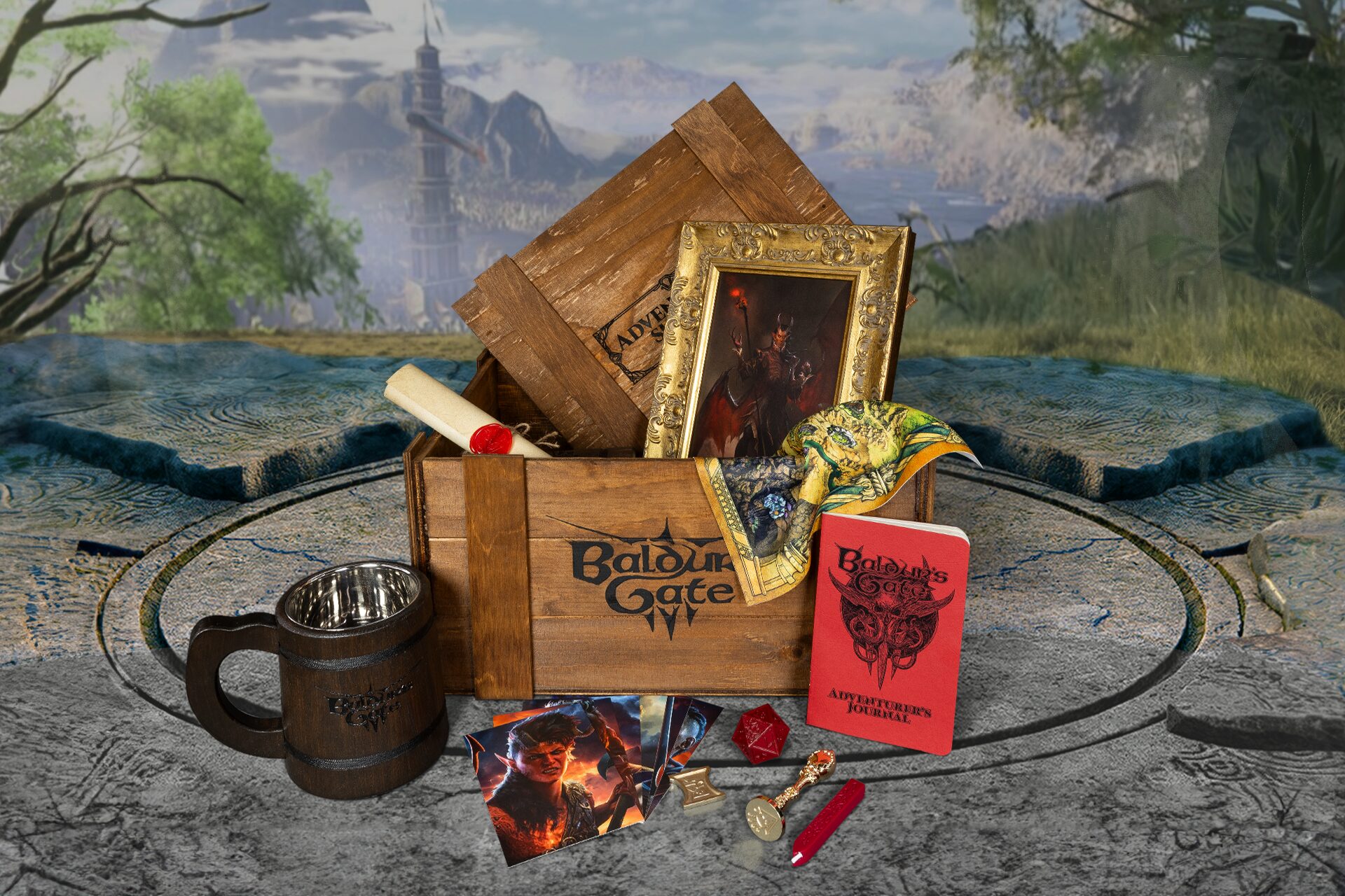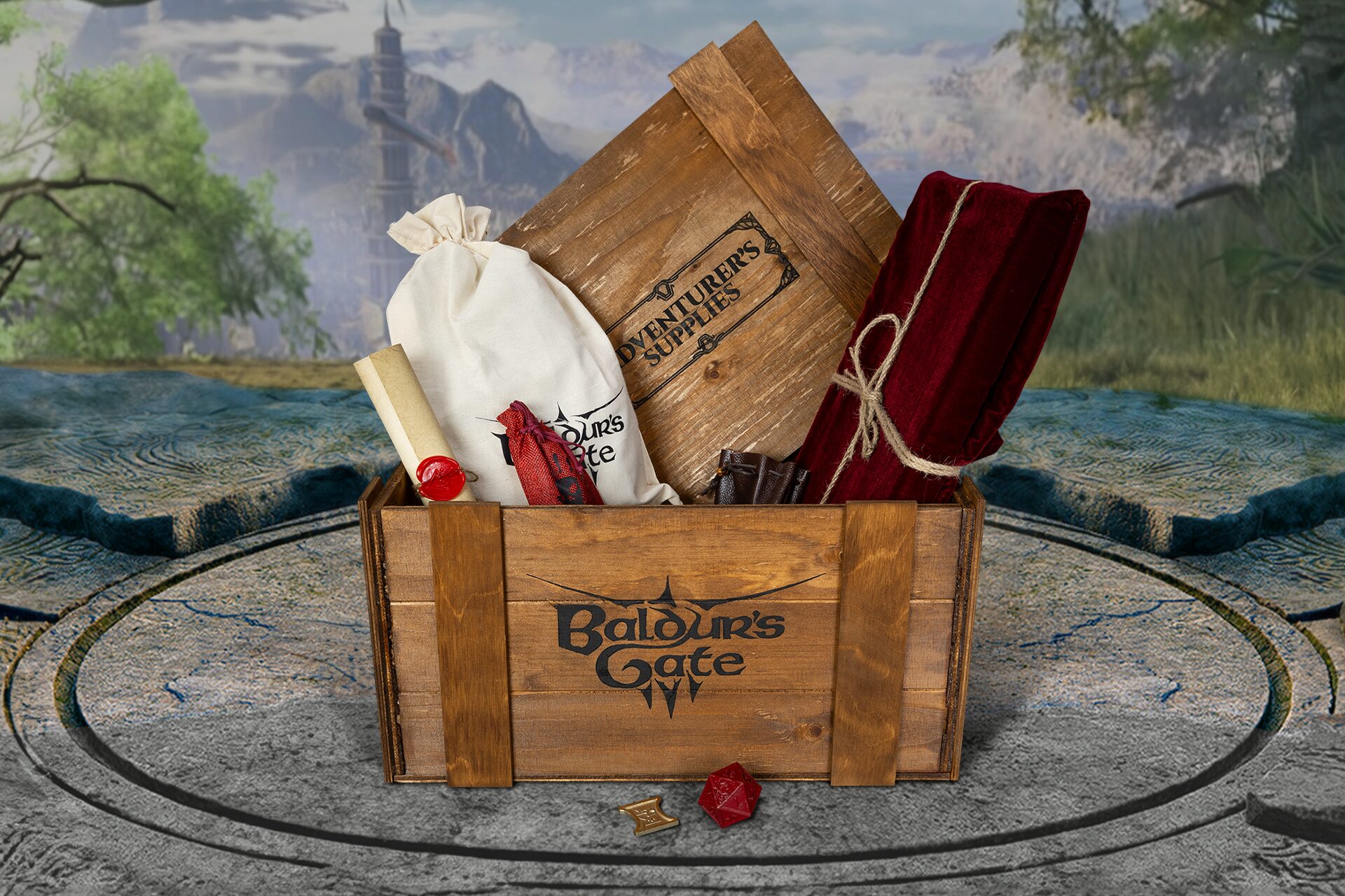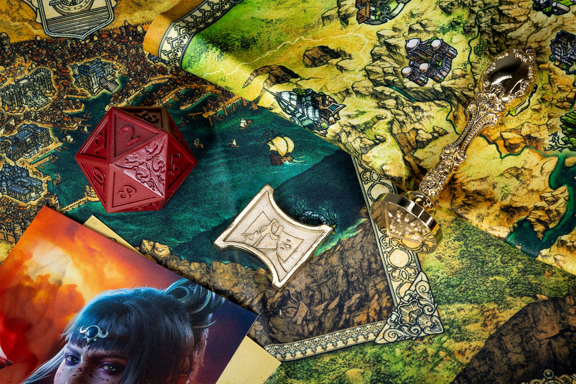 Goodies also included an oversized hand-forged bronze d20 with red patina, and a hand-forged Baldur’s Gate bronze coin. A hand-painted Baldur’s Gate-engraved tankard, two cloth snack bags, origin character postcards and brown jute bags all completed the kit, which was distributed to notable online content creators in the RPG space.