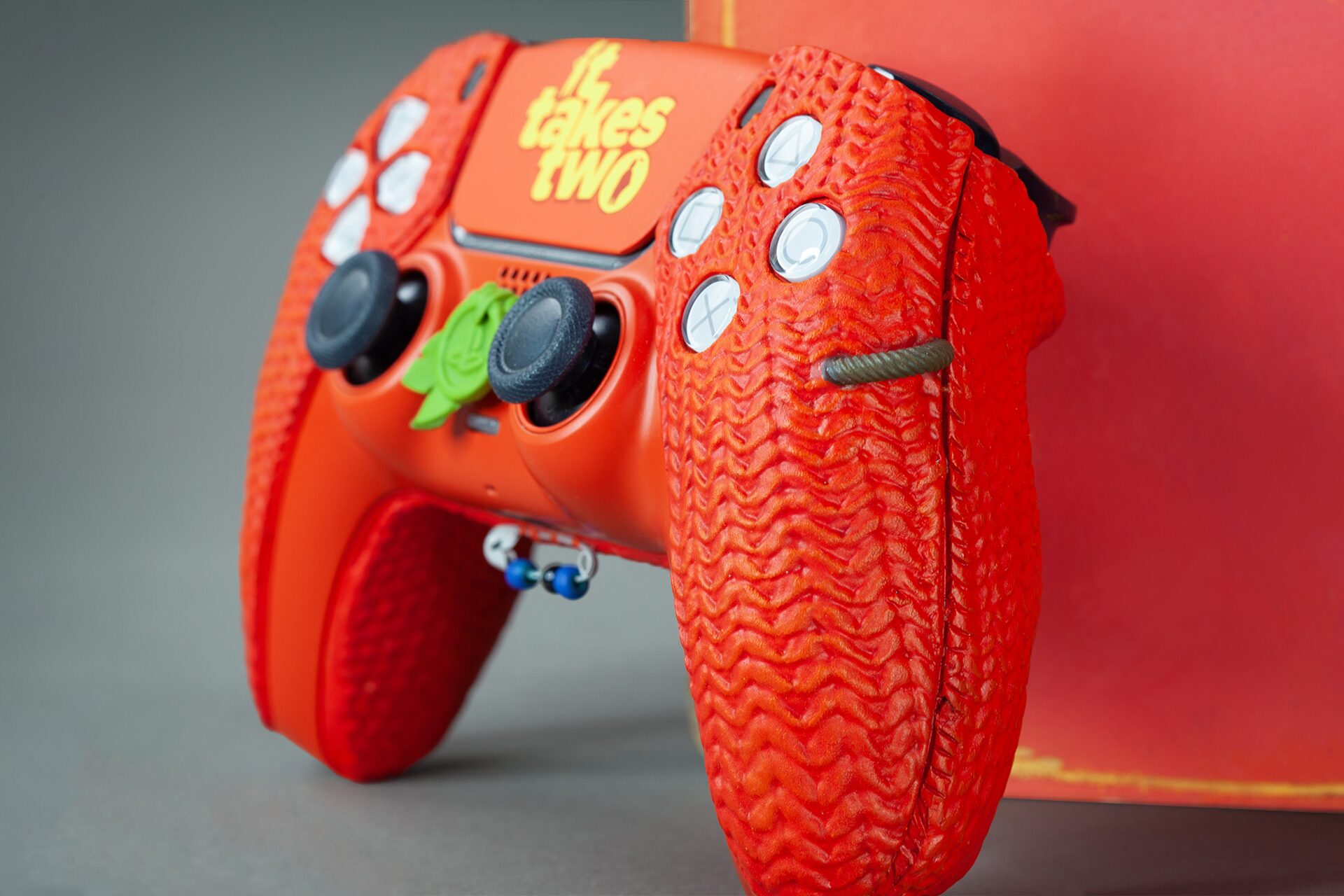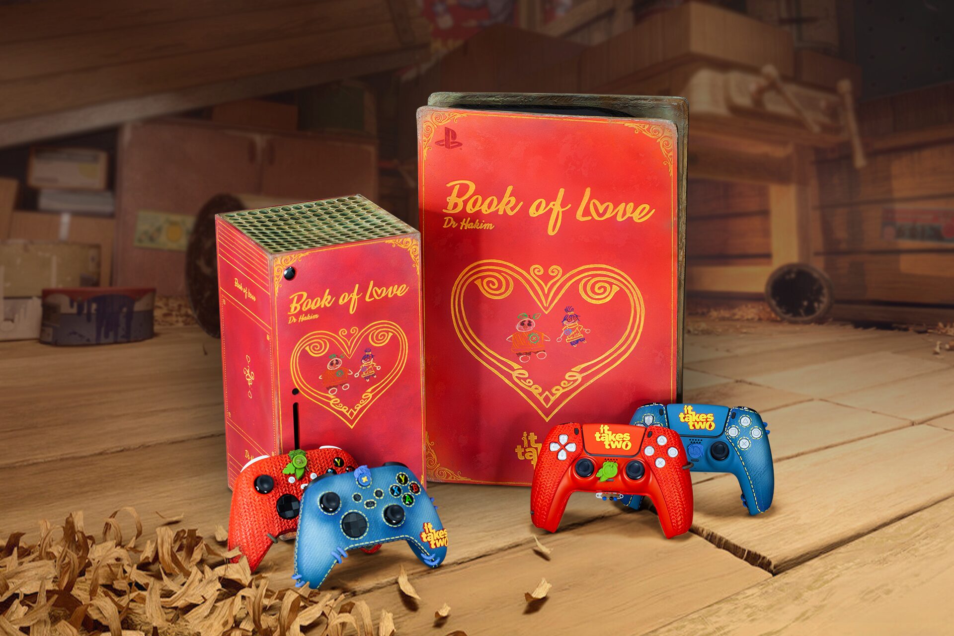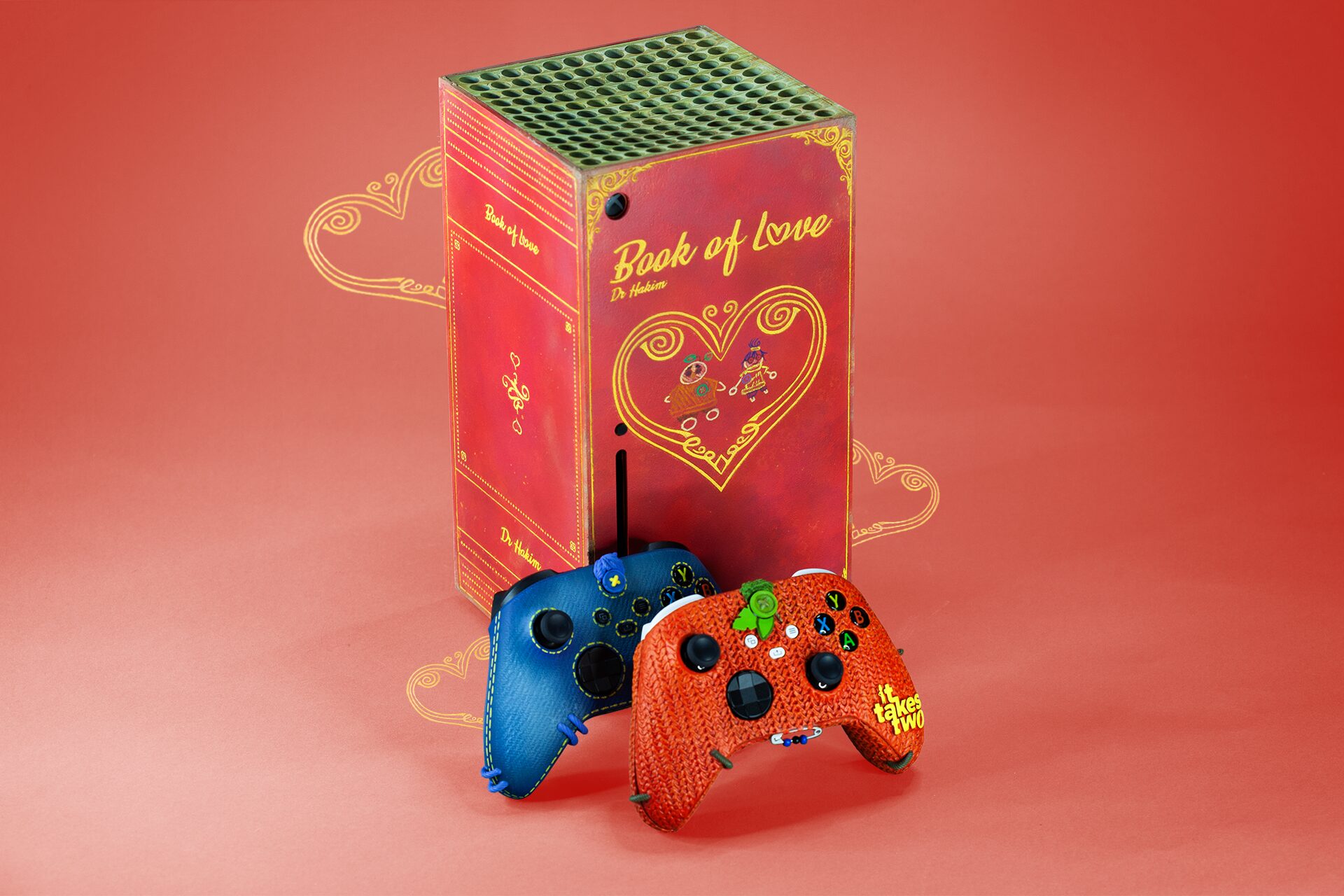 Following their victory at The Game Awards, EA asked if we could create custom It Takes Two Xbox Series X and PlayStation 5 hardware, alongside custom controllers, that could be given away to fans in a sweepstake to thank them for their support.