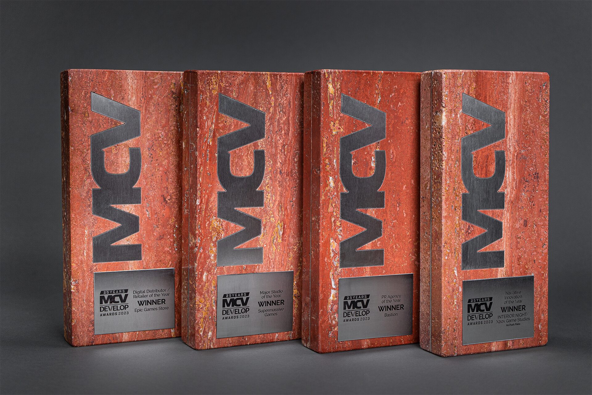 The MCV/DEVELOP awards are a highly-prestigious industry event in the UK games calendar, and we wanted to reflect its success through the trophies we were asked to produce for them. At the very start of the project we underlined that our trophies had to have a special quality, be unique and have a bespoke, handmade feel to them. The material used was key to fulfilling the brief.