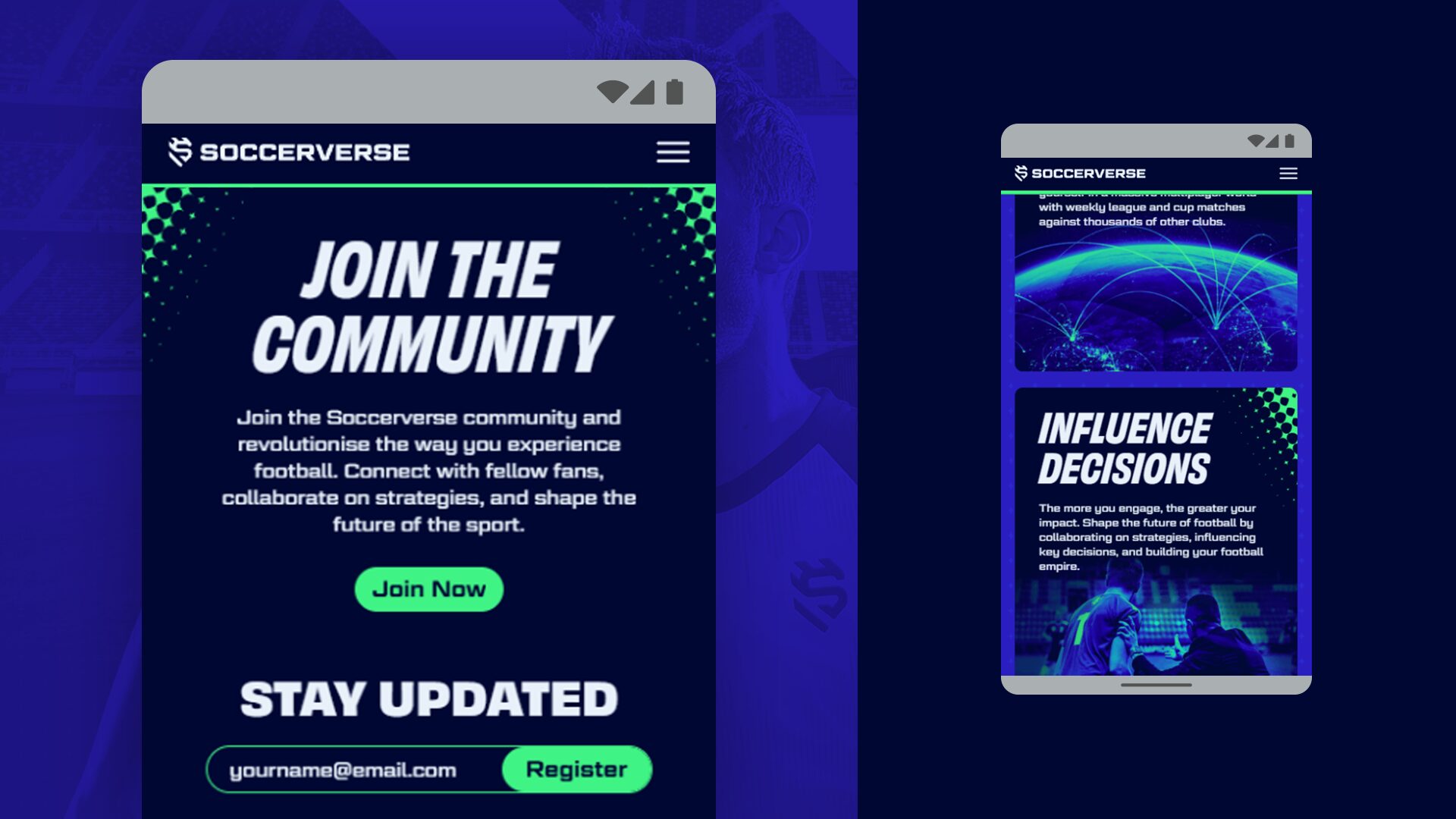 The challenge lay in crafting a brand identity that resonated with the dynamic and diverse world of football, while remaining distinct and versatile. Soccerverse wanted a premium aesthetic that transcended ties to any single football club, appealing to its broad audience of managers, players, influencers, and scouts. The new branding needed to celebrate the game’s multifaceted nature while delivering a cohesive and modern identity that could drive their digital presence forward.